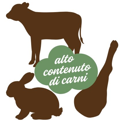 Prosciutto e vitello: 45% carni e derivati*(4% prosciutto, 4% vitello), sottoprodotti di origine vegetale* (0,4% inulina da cicoria), sostanze minerali. Additivi/kg: Additivi nutrizionali: vit. D3 200 U.I., vit. E 100 U.I., biotina 100 μg, taurina 100 mg, Zn (solfato di zinco monoidrato) 20 mg, Mn (solfato manganoso monoidrato) 3 mg. Coniglio: 45% carni e derivati* (8% coniglio), sottoprodotti di origine vegetale* (0,4% inulina da cicoria), sostanze minerali. Additivi/kg: Additivi nutrizionali: vit. D3 200 U.I., vit. E 100 U.I., biotina 100 μg, taurina 100 mg, Zn (solfato di zinco monoidrato) 20 mg, Mn (solfato manganoso monoidrato) 3 mg*ingredienti naturali