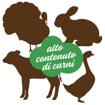 Tacchino: 45% carni e derivati* (8% tacchino), sottoprodotti di origine vegetale* (0,4% inulina da cicoria), sostanze minerali. Oca e Anatra: 45% carni e derivati* (8% oca, 8% anatra), sottoprodotti di origine vegetale* (0,4% inulina da cicoria), sostanze minerali. Vitello: 45% carni e derivati* (8% vitello), sottoprodotti di origine vegetale* (0,4% inulina da cicoria), sostanze minerali. Coniglio: 45% carni e derivati* (8% coniglio), sottoprodotti di origine vegetale (0,4% inulina da cicoria), sostanze minerali. Additivi/kg: Additivi nutrizionali: vit. D3 200 U.I., vit. E 100 U.I., biotina 100 μg, taurina 100 mg, Zn (solfato di zinco, monoidrato) 20 mg, Mn (solfato manganoso, monoidrato) 3 mg*ingredienti naturali