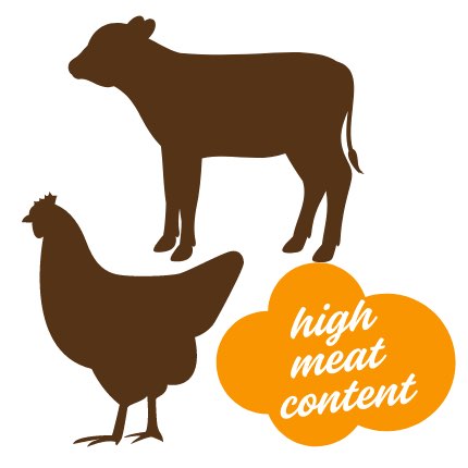 Chicken: 45% meat and animal derivatives* (8% chicken), derivatives of vegetable origin* (0.4% inulin from chicory), minerals. Additives/kg: Nutritional additives: vit. D3 200 I.U., vit. E 100 I.U., biotin 100 μg, taurine 100 mg, Zn (zinc sulphate monohydrate) 20 mg, Mn (manganous sulphate monohydrate) 3 mg. Veal: 45% meat and animal derivatives* (8% veal), derivatives of vegetable origin* (0.4% inulin from chicory), minerals. Additives/kg: Nutritional additives: vit. D3 200 I.U., vit. E 100 I.U., biotin 100 μg, taurine 100 mg, Zn (zinc sulphate monohydrate) 20 mg, Mn (manganous sulphate monohydrate) 3 mg*natural ingredients