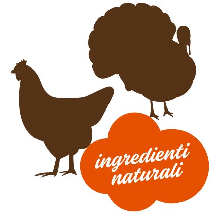 Pollo: carni e derivati* 45% (pollo 8%), sottoprodotti di origine vegetale* (inulina da cicoria 0,4%), sostanze minerali. Tacchino: carni e derivati* 45% (tacchino 8%), sottoprodotti di origine vegetale* (inulina da cicoria 0,4%), sostanze minerali. Additivi/kg: Additivi nutrizionali: vit. D3 200 U.I., vit. B9 550 mg, vit. E 100 U.I., vit. B1 12 mg, vit. B6 2,7 mg, biotina 180 μg, taurina 100 mg, zinco (solfato di zinco monoidrato) 20 mg, manganese (solfato manganoso monoidrato) 3 mg*ingredienti naturali