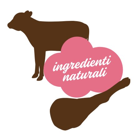 Prosciutto: carni e derivati* 45% (prosciutto 5%), sottoprodotti di origine vegetale* (inulina da cicoria 0,4%), sostanze minerali. Vitello: carni e derivati* 45% (vitello 5%), sottoprodotti di origine vegetale* (inulina da cicoria 0,4%), sostanze minerali. Additivi/kg: Additivi nutrizionali: vit. D3 200 U.I., vit. B9 550 mg, vit. E 100 U.I., vit. B1 12 mg, vit. B6 2,7 mg, biotina 180 μg, taurina 100 mg, zinco (solfato di zinco monoidrato) 20 mg, manganese (solfato manganoso monoidrato) 3 mg*ingredienti naturali